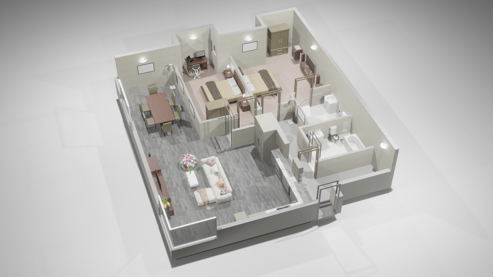kitchens become the centrepiece of the apartment layout – perfect for entertaining. Bedrooms have a particularly generous footprint, creating a mood of sanctuary and peace. The design has been crafted with careful consideration and great imagination to deliver efficient use of space, and a light and airy feeling.